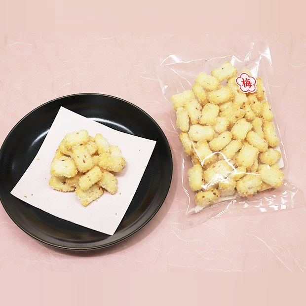 小粒のあられに、たっぷりとザラメをふりかけ、ほんのりと梅の風味をきかせました。※商品の形状が変更になりました。 賞味期限:製造日より120日 アレルギー特定原材料等:小麦・大豆 ・ご購入ガイド ・アレルギー・栄養成分一覧表 ・商品について問い合わせる